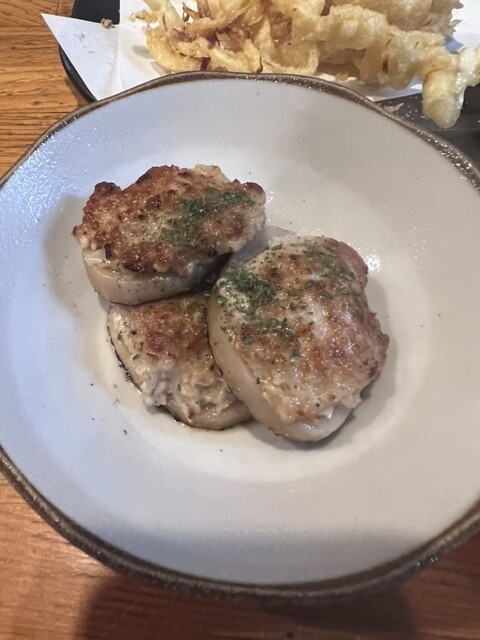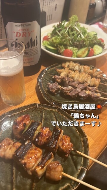 焼鳥鶴ちゃん #焼とり居酒屋でエイヒレとハートとスルメのてんぷらと和牛おろしポン酢とかわとネギももとズリとキモと肉蓮根と手羽先焼きとつくねチーズ を注文して美味しく頂きました♪お腹いっぱい❣️ご馳走さまでした〜(^^)