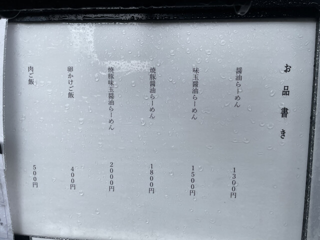 それにトッピングの焼豚、味玉、肉ご飯などのサイドメニューもありました。