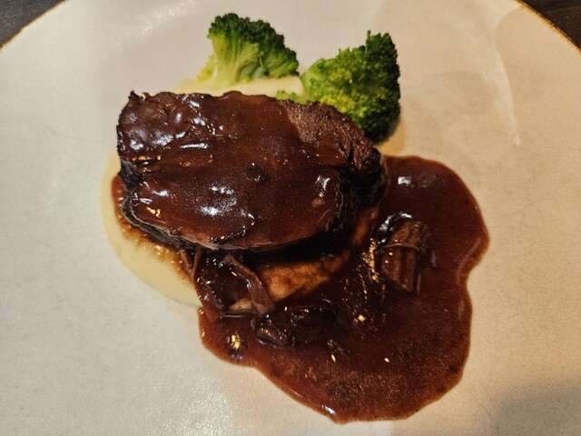 フォークでするっと切れる柔らかさ、ほどよい加減の赤ワインの渋み。