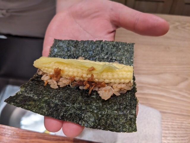 個人的には海老天の入った手巻きが衝撃でした!!!