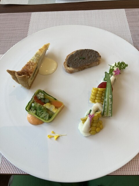 スープ、前菜、メインお肉とお魚、ご飯はリゾットでした☺️