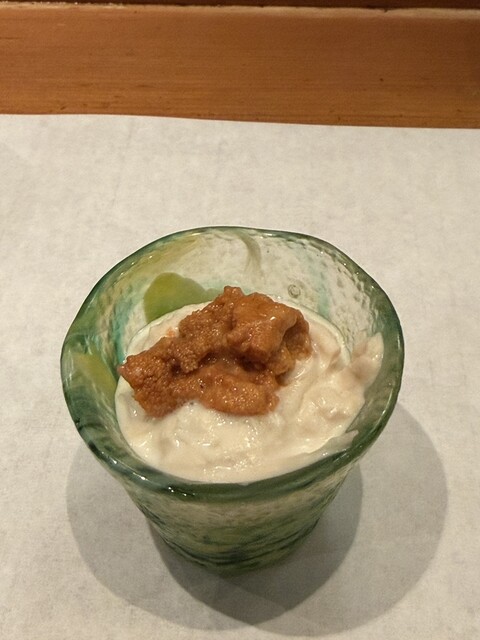 こちらの居酒屋が前々から気になっており、1か月ほど前から予約して華金に訪問。カウンター7席ほど、4人掛けテーブルが2卓のこぢんまりとした店で、夜は二部制で回しているらしい。常連客で賑わいながらも、一見にも分け隔てのない気持ちの良い接客が印象的だった。