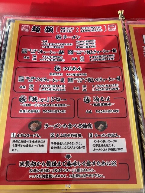 我道家麺メニュー