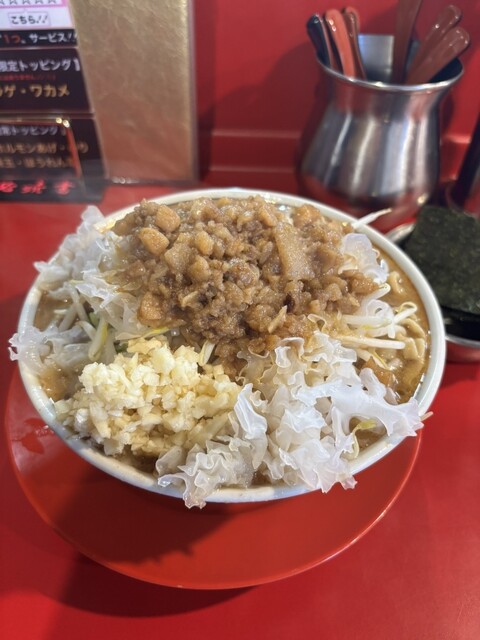5分程で券売機!我二郎特盛旨口ヤサイ普通にんにく普通脂多め濃いめ