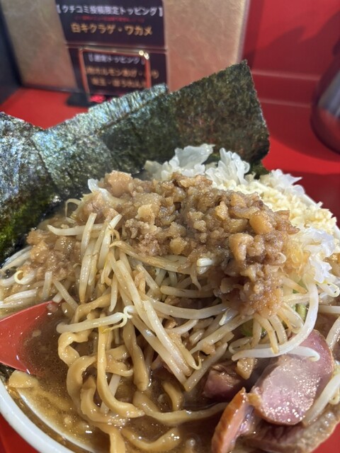 ガツンとパンチのある濃いスープに極太ワシワシ麺にシャキシャキもやしも相性抜群