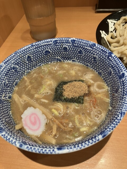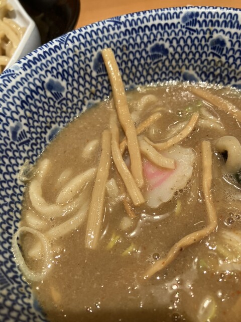 つけ汁は見た目からも濃厚さが分かります、麺を漬けていただくと濃厚な豚骨味わいの中に後から魚介を感じる美味しいスープ、程よい濃度もあり麺との絡みも良かったです