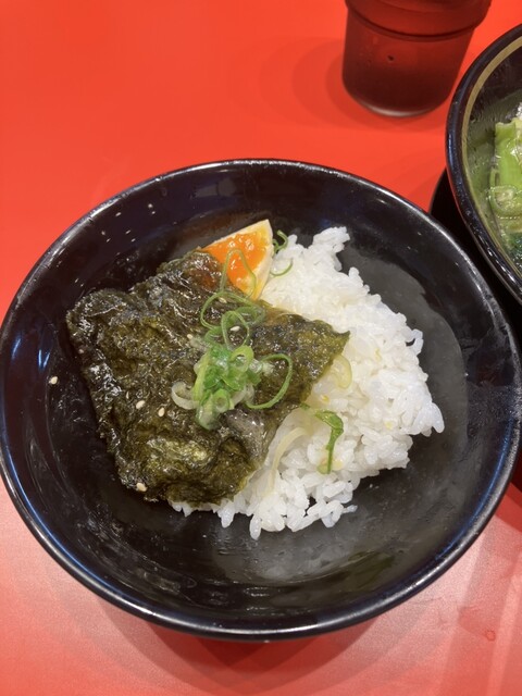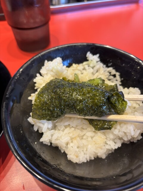 麺は少ししかいただいていませんがライスが無くなってしまいお代わり!上カウンターにお茶碗を置くとお代わりのサイン!大盛りでお願いしました