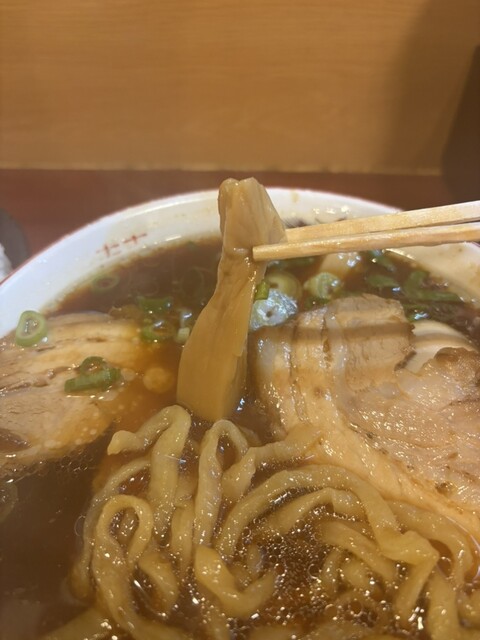 スープをいただくと高井田系より塩味を抑えた甘味をも感じ出汁をしっかりと感じられる深みある美味しい醤油スープです