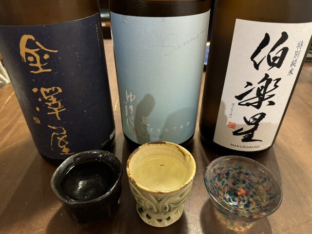 お酒も女将に一任、阿部勘金魚(宮城県)、Mr.Summer Time(宮城県)、墨廼江(宮城県)、金澤屋(福島県)、ゆきの美人(秋田県)、伯楽堂(宮城県)、秀凰(山形県)、篠峯(奈良県)、亀の海(奈良県)をチョイスしていただき、どれも食の邪魔をせず、でも旨味甘味辛味の存在感もありました。