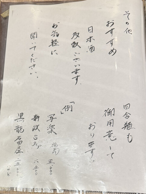 事前に18:30食べログ予約(4人席のみ)をしたうえで入店です。茨城町生まれ、日立市生まれ、武生市(現越前市)生まれ、そして江田島町(現江田島市)生まれそれぞれが敦賀時代を懐かしみつつ、今、茨城で酒呑むこととなりました。本日のカムチャツカ半島地震影響による津波警報で一時避難(会社休み期間で良かった)もしましたが、無事開催できましたよ。以下をお願いしました。