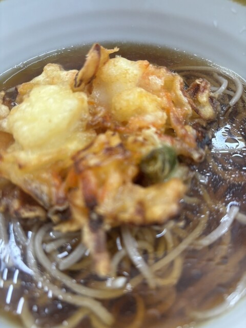 笠置さんはオーダーが入ってから天ぷらを一品づつ揚げているのであつあつサクサク。ゲソ天は猫舌さん、お子さんは要注意ですよ。そばも注文毎に茹でていただけるので立ち食いでも喉越ししっかり。