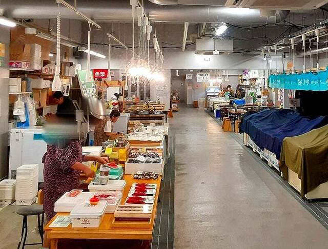 陸奥湊駅前は八戸市営魚菜小売市場を中心に、多くの魚介類の小売店や仲卸業者が軒を連ねており、八戸の台所としても親しまれていて、平日・土曜日の早朝から通り沿いでは小規模ですが朝市が開催されます‥。