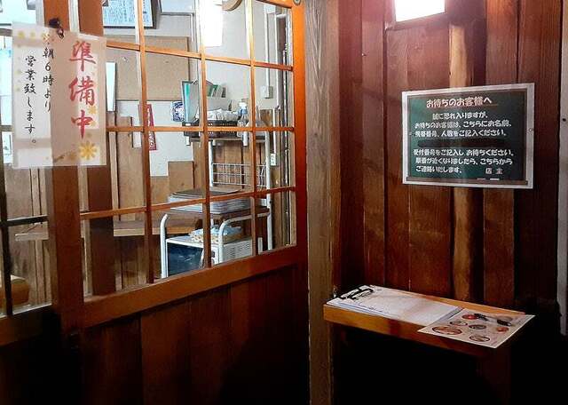 特に週末は朝3時4時位に予約を書き入れないと、それこそ何時間も待たされるような、或いは諦めて帰るような、そんな物凄い事になっているのは予想してたので、宮古でも3~4時間ほどの睡眠で出発し4時位には到着しようとしたのですが、実際は想像以上の現状でしたね…、この後にも書きますが6時位に来店し名前を書き入れようとしたお客さんにはお店の店員さんから「今のご予約ですと、だいたいお食事は9時位にはなりますが‥」なんて言われていました‥(;^_^Aアセ‥。