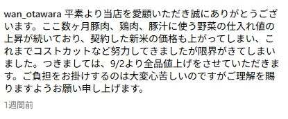 2025年9月9日 火曜日 栃木の日光市に安国屋”という食事処がありまして、テレ東”の『有吉木曜バラエティー』でも取り上げられ私もブログ用”に一度は訪れ食べたい、と思っているターゲットがこのポークステーキなのですが、何せ1㎏オーバーの肉の塊”なもので食事制限をして来た私に食べ切れも筈もなく‥。 画像はWeb上からお借りしました‥_(._.)_ テレビとかWeb上ではエアーズロック”とか言われていますが、若し私がこの店へ行く機会があれば、タッパー持参”は必須かと思っていますがね‥。 それで一昨日の日曜ですが、カミさんが友達と旅行へ行って私一人”でしたので、一人羽を伸ばし何処へ行こうかと‥。 《オモウマ》とか《タクうま》とか《有吉の‥》とかの文言を打ち込み検索し、マニアックな私的にオモシロそうな店は無いかと…、それも遠からず近からずの丁度いい栃木あたりで何か無いかと検索していたら‥。昨年の春頃《有吉木曜バラエティー》で紹介された、ハンバーグの中に栃木和牛のサイコロステーキが入っている、あらびきステーキハンバーグ”を提供する【まつ坂】が私の目に留まり、ブログ的にも良さげかなとGooglemapで場所とか画像を検索していたら‥。 うん、ローストポークわん大田原店"の表示が目に留まり、何気にメニューとかを検索してみたら‥。 メニューにエアーズロック的なヴィジュアル”の料理が、あ~るじゃぁないですか~…、そんで即決断‥。7時半頃に家を出て古殿~棚倉~伊王野の道の駅~大田原へと向かいまして‥。 途中、その伊王野の道の駅でトイレ休憩‥。 〝大鍋芋煮〟と〝新米まつり〟が目に入りやっているのかと近寄ってみたら‥。 …来週じゃん‥。 そして開店30分ほど前の10時30分近くに目的の‥。看板と駐車場の入り口の位置関係も微妙で1回通り過ぎてしまいましたが‥。 【ローストポークわん大田原店】へ到着‥。 駐車場の注意書きを見に来たら、名前を記入する用紙が設置されていたので書き込んで…、因みに私は3組目‥。その駐車場所ですが、車止めに黄色く{来客用}とのシールが貼られている所への駐車となるのですが、けっこう何台分もありましたね‥。 開店時間の11:00丁度に店が開き、書き入れた順番通りに店内へ案内され‥。※平日は11時30分開店かも‥。お一人様の私はカウンターの一番の奥へ案内され、そこから見た開店直後のお客さん達”の様子と、その左側”が厨房にトイレとそして全体に綺麗に整理整頓され、小ざっぱりとした綺麗な店ですね‥。 カウンターは4人と奥の(入り口側)の小上がりには4人用の座卓が1卓‥。4人用テーブルは全部で5脚だったかな‥。 店は店主さんと奥様と、女性スタッフ3人で切り盛りされているよう‥。 豊富なメニューの一部‥。 ※写真は撮りませんでしたがまだまだ多くのメニューがありまして、現在Web上で見られるメニューは8月までのものがほとんどのようですので、9月からはいくらか値上がっていると思われますのでご注意を‥_(._.)_。 注文は…当然”【鉄板ローストポークソテー定食】450gとノンアルビール‥。ご飯は小ライスで‥。 冒頭で紹介した安国屋”の1kgのエアーズロック”の約半分の、450gではありますが‥。この料理が配膳され際、周りのお客さん達の多くの視線を感じたり‥。 その大きさ(分厚さ)を見比べるのに、ノンアルビールを脇に置いてみましたが‥。どど~ん”と、肉塊”は高さ5センチ位…、若しくはそれ以上ありそうな分厚さで、これもまさにエアーズロック”‥。 当然{食べ切れないよな}と事前”に予想はしていましたので、タッパーも持参はしていましたが‥。 ナイフを入れると外はカリッ”と‥。中はしっとり”として柔らか~‥。 この説明書き通りブロック肉”或いはミニ”エアーズロック”的な《低温熟成国産肩ロース450g》はじっくりと低温調理されているので、表現するなら中はしっとりとしていて余計な脂は落ち、分厚い”のに柔らかくて表面はカリッとした感じ的な‥。 ソースは2種類付いていて、先ずは和風なポン酢ソースから‥。そのポン酢ソースはそれほど酢”が効き過ぎている事もなくコクもあって、冷えたノンアルビールをグビッ”と呷れば…、美味いね~‥。 お次はバーベキューソース‥。このとろみのあるソースはニンニクも効いていて、美味いね~‥。 ノンアルビールもいいけど‥。ワンバン”してご飯と一緒にいただくも美味し‥。 この手のポークソテー(ミニ”エアーズロック)はいわき”に無いかも知れませんね~…、そして絶対食べ切れないと思っていたのですが、30分ほど時間をかけ食べ進め‥。 綺麗に完食…って、自分でもビックリΣ(゜Д゜)‥。そして秀逸だったのが豚汁…、具沢山で大根とかもの凄”っく大きくカットされ、汁もとろみがあってニンニクも効いていて何か味噌ラーメンのスープのようで、とても美味かったです‥。 それにしても450gを完食ですよ~‥。 俺ってまだまだイケんじゃね‥って、先週食事制限のネタを