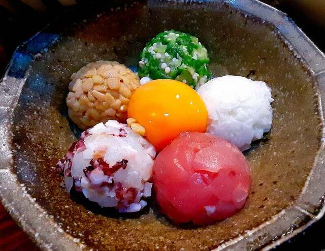 鮪、烏賊、納豆、オクラ、山芋に卵黄をまぜまぜして、ご飯にぶっかけ丼にして食べるようですが‥。