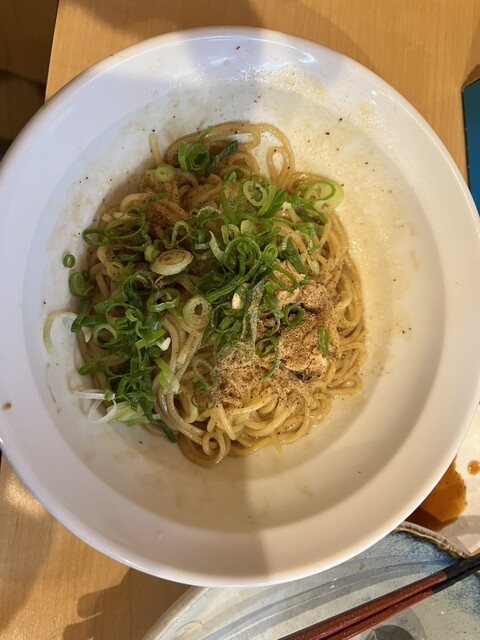 今回は、つけそば並と、節ご飯、和え玉、餃子を注文しました。