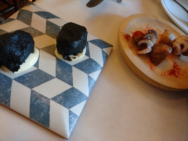 連れさまのお気に入りは、イカ墨のブニュエロスとアスパラホタルイカ!