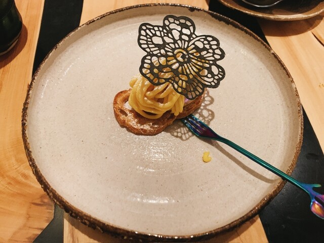 料理は6,600円のコースにペアリングでお願いしました。料理内容は写真の通りですが、料理も素晴らしかったのでが、それに合わせたお酒のチョイスがまた最高でした。加えてシェフが全て手作りで焼いたお皿などが料理の雰囲気をアップしてくれてとてもワクワクして頂きました。