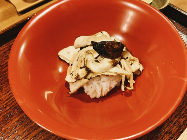 松茸は鱧の上に薄くスライスして焼いたものと、土瓶蒸しで頂きましたが、どちらも松茸の良い香りが残る素晴らしい料理でした。