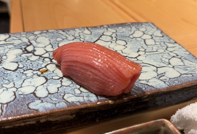 名刺が代わりの最初の一貫、隠し包丁を入れたマグロはいつ行っても美味しいし、感動する...!