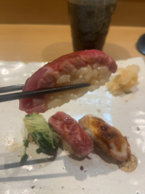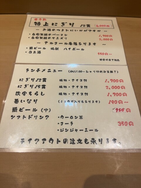 本マグロや白身、ホタテなどの定番に、かいわれ大根の昆布締め、なめこの巻きも美味しかったです。鯨ベーコンもナイス。シャリは少なめですが、ネタは良かったです。