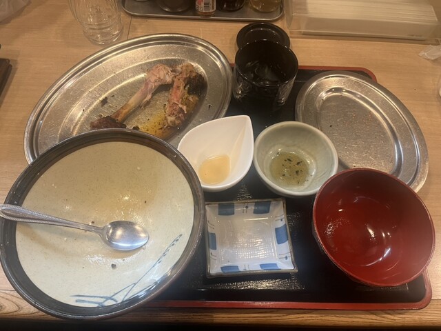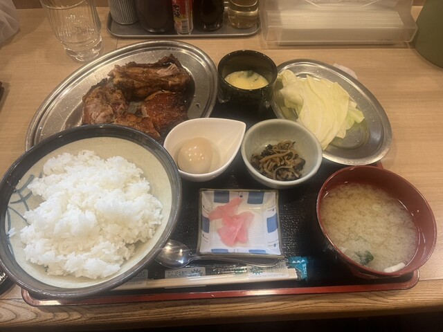 かなり混んでるお店です。本日はお店一推しをいただきました。ご飯は大盛り(無料)です。お肉の皮はパリッと香ばしいです。身は柔らかくジューシーで塩っぱめなのでご飯がすすみます。黒胡椒が効いているのがポイントですかね。
