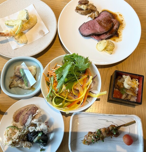 ローストビーフ、揚げたて天ぷら、