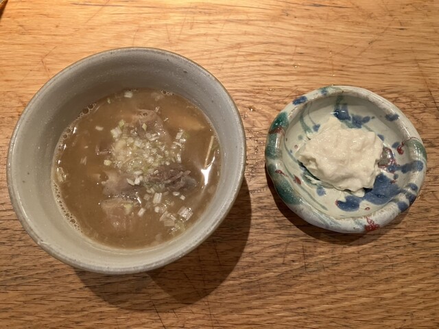 色々な部位が入った煮込みとサービスの湯葉。