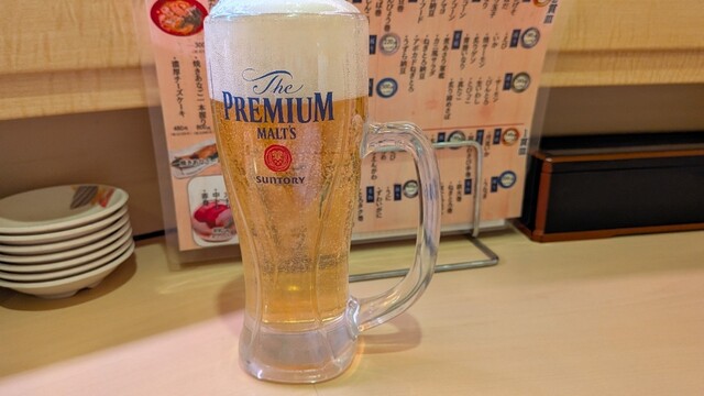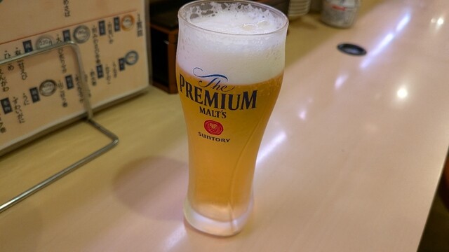 店内にはおすすめメニューがたくさん貼られていて、特に「さんま」や「アワビの肝」が気になりました。まずはビールで乾杯し、「あわびの肝」を注文。初めて食べる肝は、程よい苦味があります。非常に美味しく、これからの料理に期待が高まります。