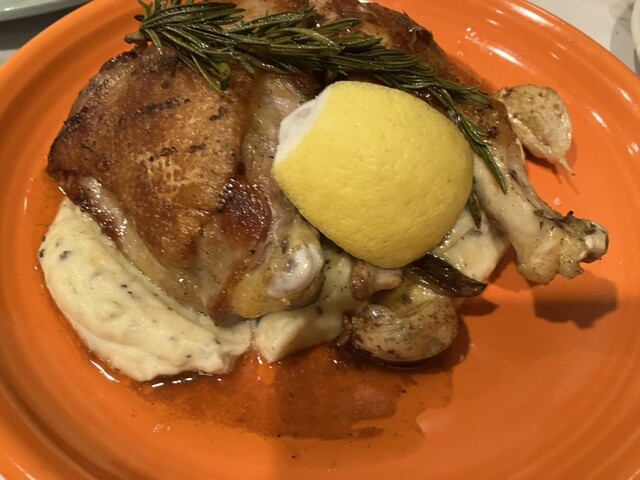 スタッフさんのアドバイスを頂き、連れを待っている間につまみながら飲むならレンズ豆のサラダからカルパッチョに変更した方が良いですよ、とのことで、カルパッチョ、蝦夷鮑、定番の黒トリュフのグラタン、そしてポークのオレンジソースと完璧な4品。今回もワインをグビグビいただきながら楽しい3時間でした。系列店のパンをお土産として購入もできるようになってました。