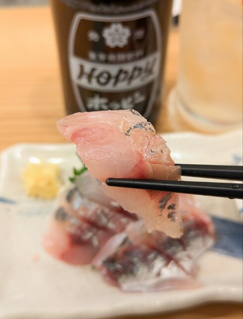 あじ刺し。お店でさばいたらしい一品。新鮮。
