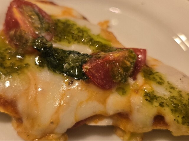 後輩が来る前に、おすすめ料理を次々と注文。お通しのピッツァから始まり、自家製ポテトサラダ、鮮魚のカルパッチョ、ペンネゴルゴンゾーラ、バッファローウィング、野菜スティックと、どれもビールにぴったりの逸品ばかり。