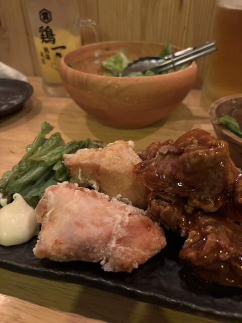 唐揚げ塩とヤンニョム。奥は写真を撮り忘れたバジルを感じるサラダ