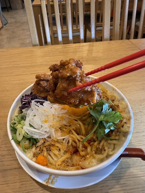 もともと、濃厚な鶏白湯とチーズでクリーミーなラーメンに、山椒と担々辣油でガツンと辛さをプラス