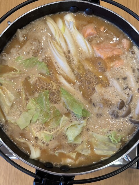 辛いよなぁと思ったら、野菜、ホルモンから甘みがでていて、鮭、せせりから出汁がでている。