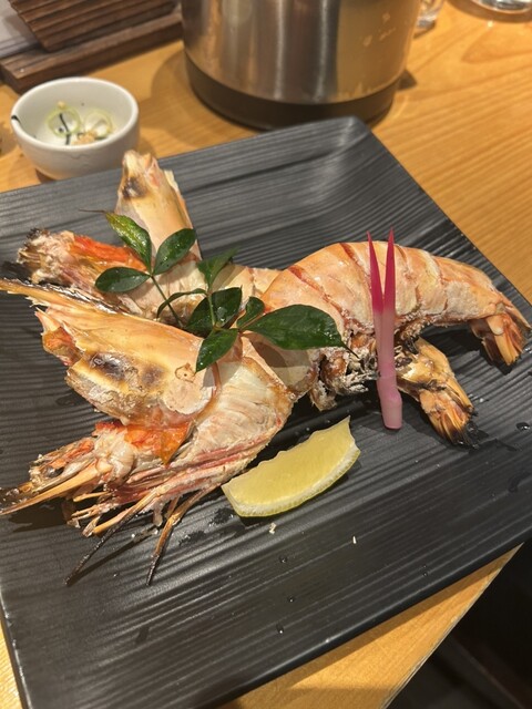 いつも貝などめちゃくちゃデカいのが置いてあるが、今回は初めてクマエビたるものをいただきました