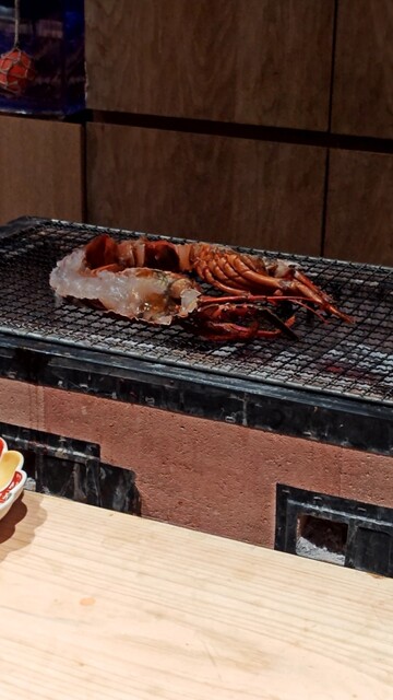 強肴 湘南沖伊勢海老半身焼き 身の締り噛むとジューシーで香ばしさ素晴らしかったです。