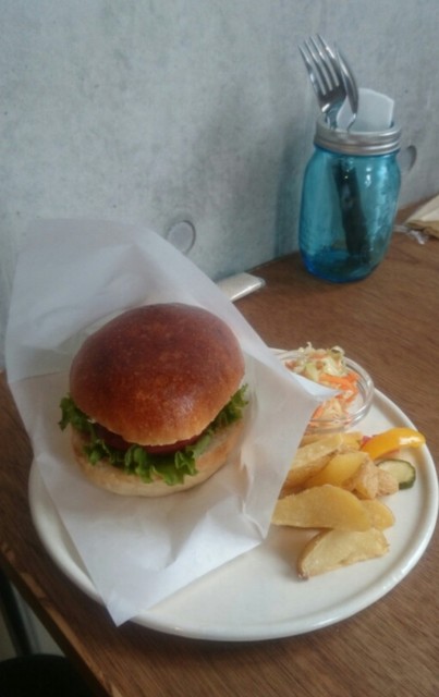 それから事前に予約した「on and on ハンバーガー 」と「バナナケーキ」に「 冷たいコーヒー」が出され いただけば そのビシュアルに比べハンバーガーのボリュームが凄く サイドメニューのカレーも食べようと思っていたが…バーガーだけで充分満足っ❗