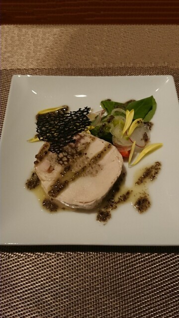 前菜 岩手県産 若鶏のガランティーヌ トリュフドレッシング