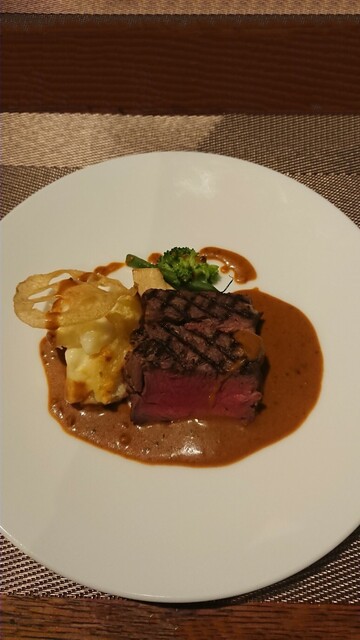 お肉料理 牛フィレ肉のグリル グリーンペッパー風味ソース