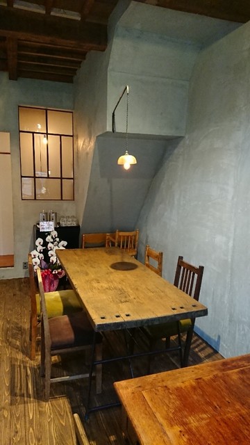 それにしても淡い壁色 灯るライト 奥には座敷席まであって この感じどこかで …