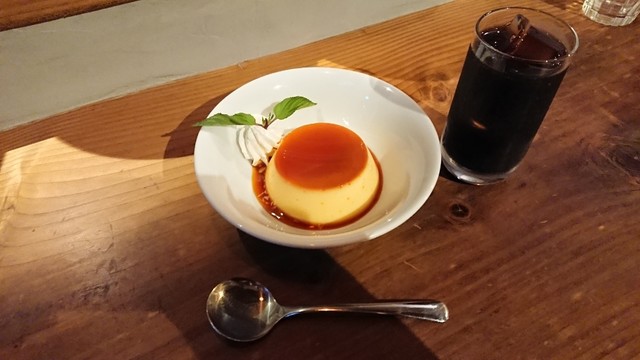 夜行の灯りの中「プリン」と「アイスコーヒー」