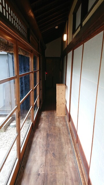 到着した入口からそっと中を覗いていると… 和装の女性が笑顔でお出迎え下さり昼の部の予約をお伝えする すると時間前ににもかかわらずご案内下さり 長い廊下へ
