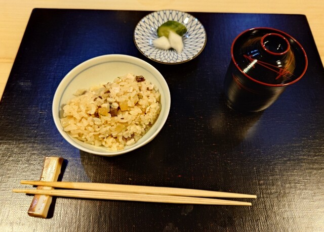 そのお椀でお茶漬けを仕上げ食べる… うん 胡麻によりお茶の苦味の旨い所だけ残り 和食なのにフレンチのソースのように濃さを包み込む この華麗な出来映えはなんだろう楽しい