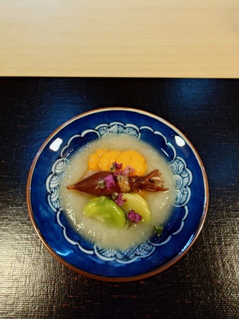 何時ものように予約時間に到着すると…主人よりお子さまの誕生のお知らせ 祝の歓喜に浸りながら "おまかせ" が始まる