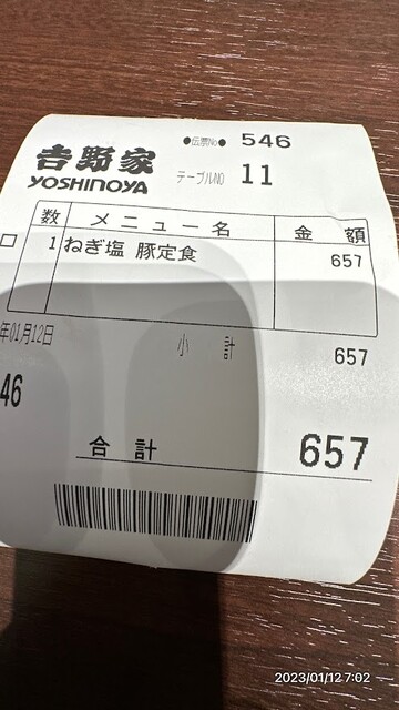 2023年1月11日水曜日 6:54頃入店