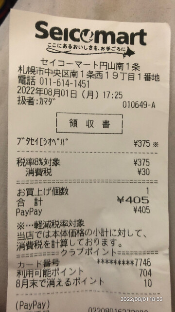 帰宅途中いつものようにブタ串を買う 晩飯代わり食うためだ