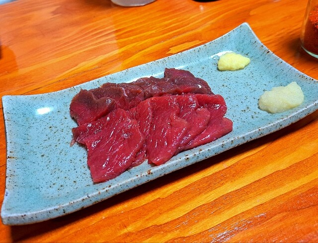 肉ぬた、チョリソー、おつまみ系を頼んでから馬刺注文