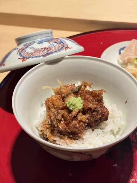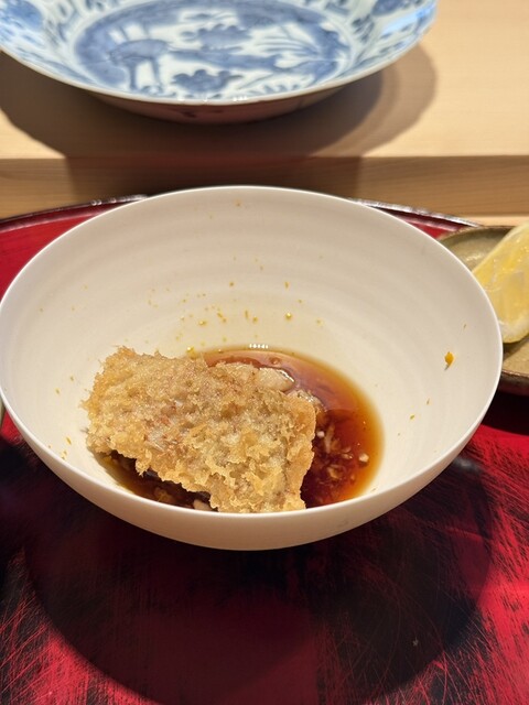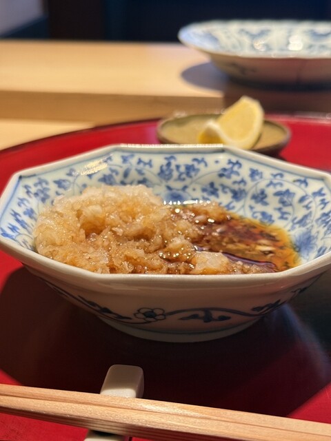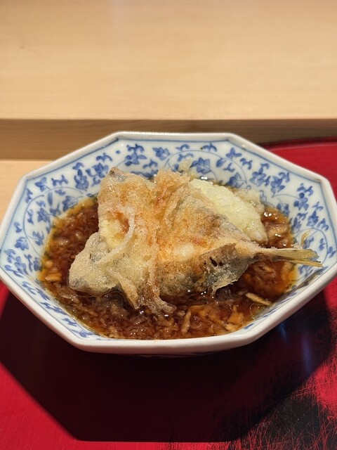 さらに感動を上書きしたのが天ぷら。衣のサクサク感と軽やかさは群を抜いており、独自のクリスピー感があります。それでいて中の魚は驚くほどふっくら。絶妙な火入れによって水分量が完璧に保たれており、しっとりとした身と軽快な衣のコントラストが、噛むたびに多幸感を運んでくれます。