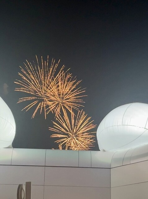 食後、開放的なテラスのソファ席で涼んでいたらパッと花火が上がって感動!!